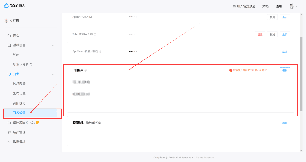 第一步:将你的QQBOT和你的公网IP绑定(狗腾讯,原来是没有这一步的,说是为了安全考虑,加了这个)。