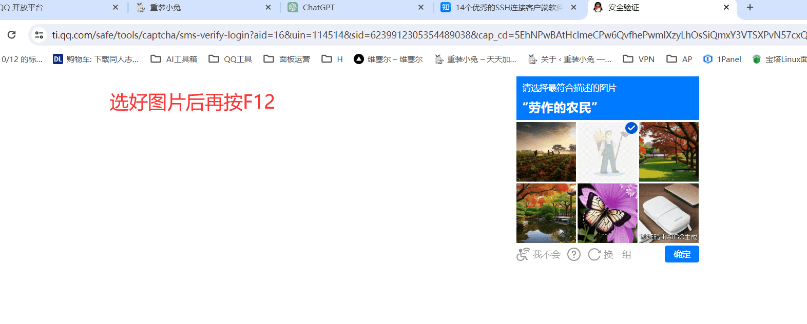 复制后,浏览器打开,图片选好后再按F12(不然返回的请求会过多,不好找Ticket)