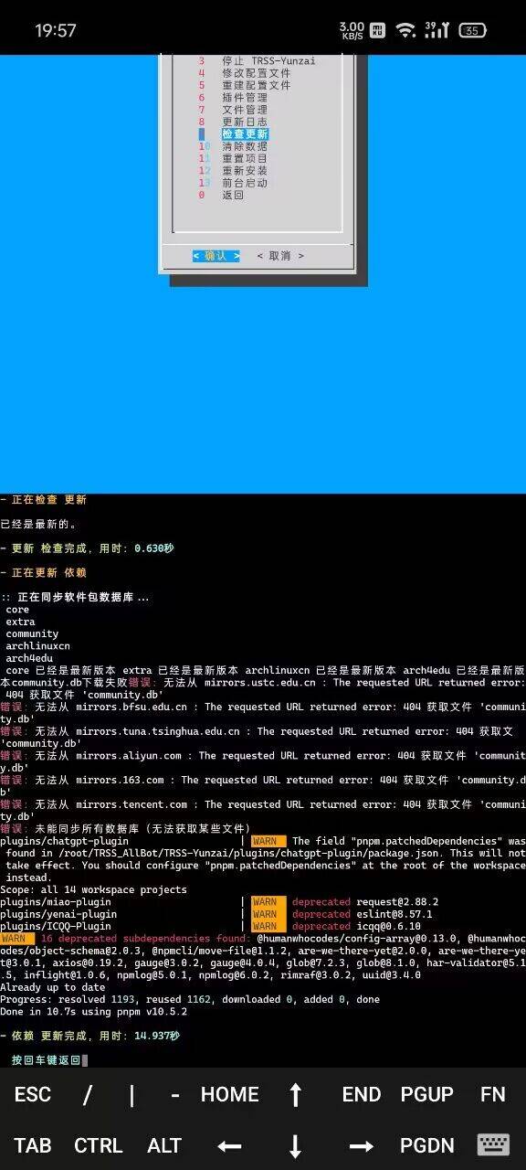 还不行你就换个崽进行安装或重新安装(喵崽去安装TRSS,TRSS去安装喵崽)就安装,其他啥也不干,不挂机器人,不装插件,安装会重新调取一部分东西,之后你再试试能不能安装上面的工具